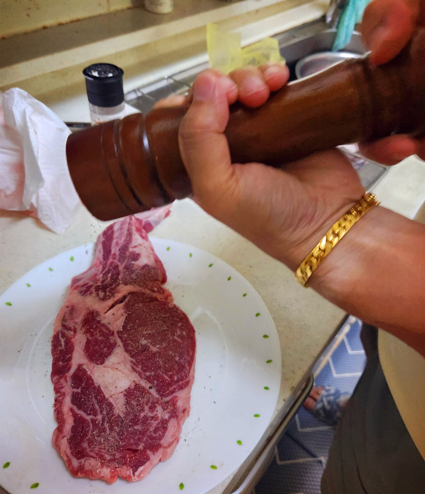 일단 토마호크의 핏물을 키친타올로 눌러가며