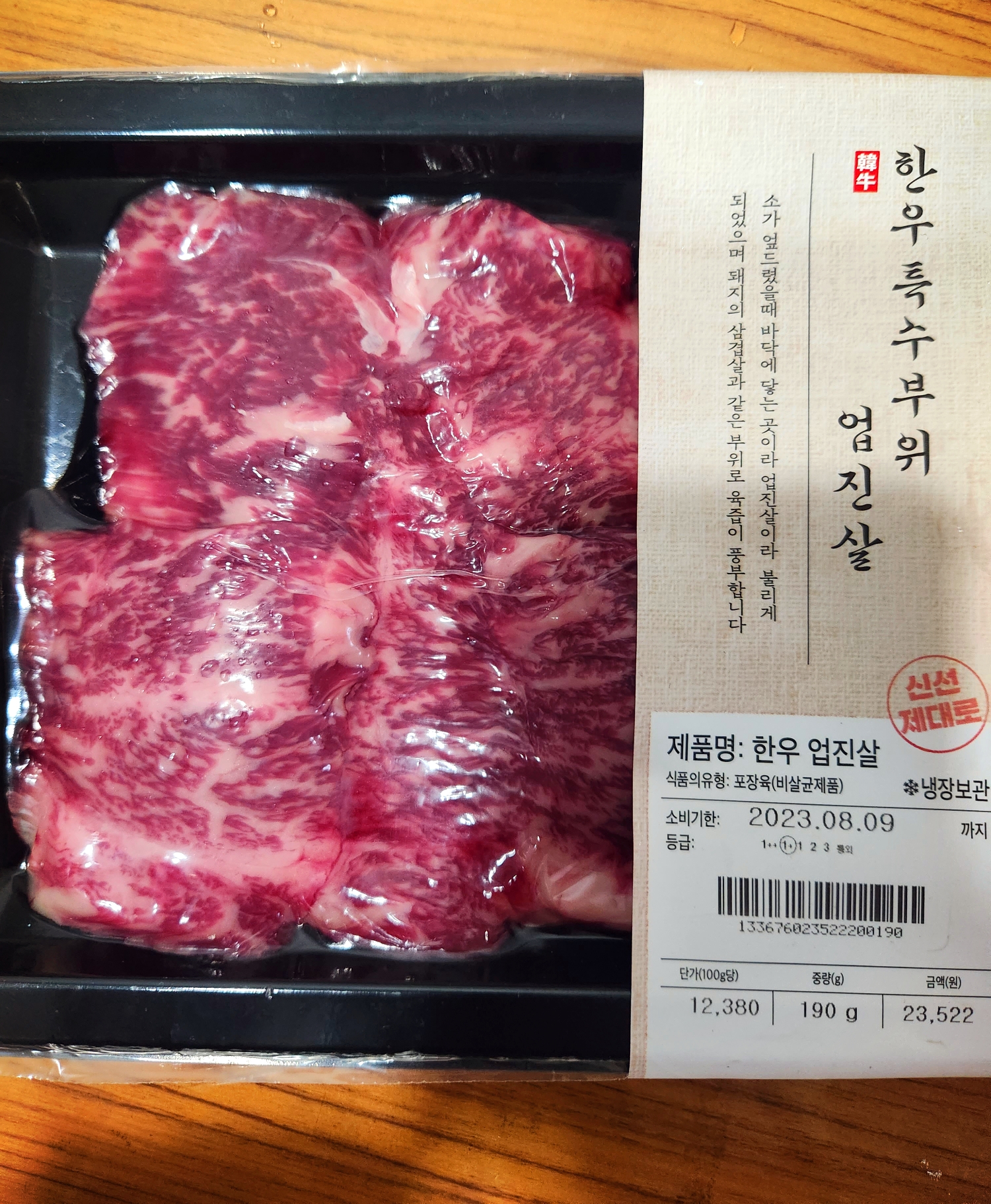 바로 요리해 먹을 수 있도록 저렇게 냉장상태 진공팩으로 포장되어 판매되고 있다