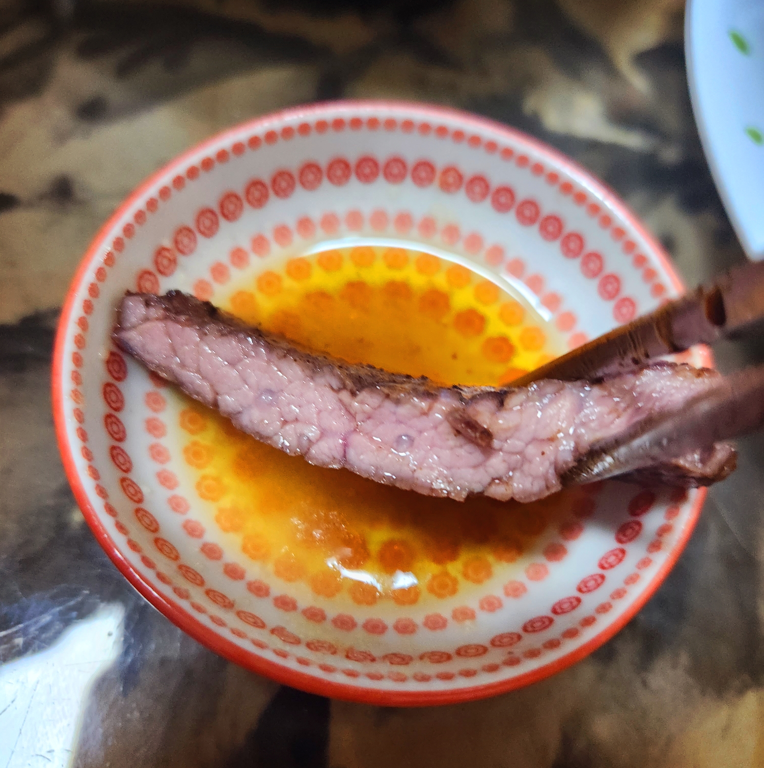 업진상의 땟깔을 보면 토마호크 보다 더 선명한 선홍빛을 띈다는걸 알 수 있다