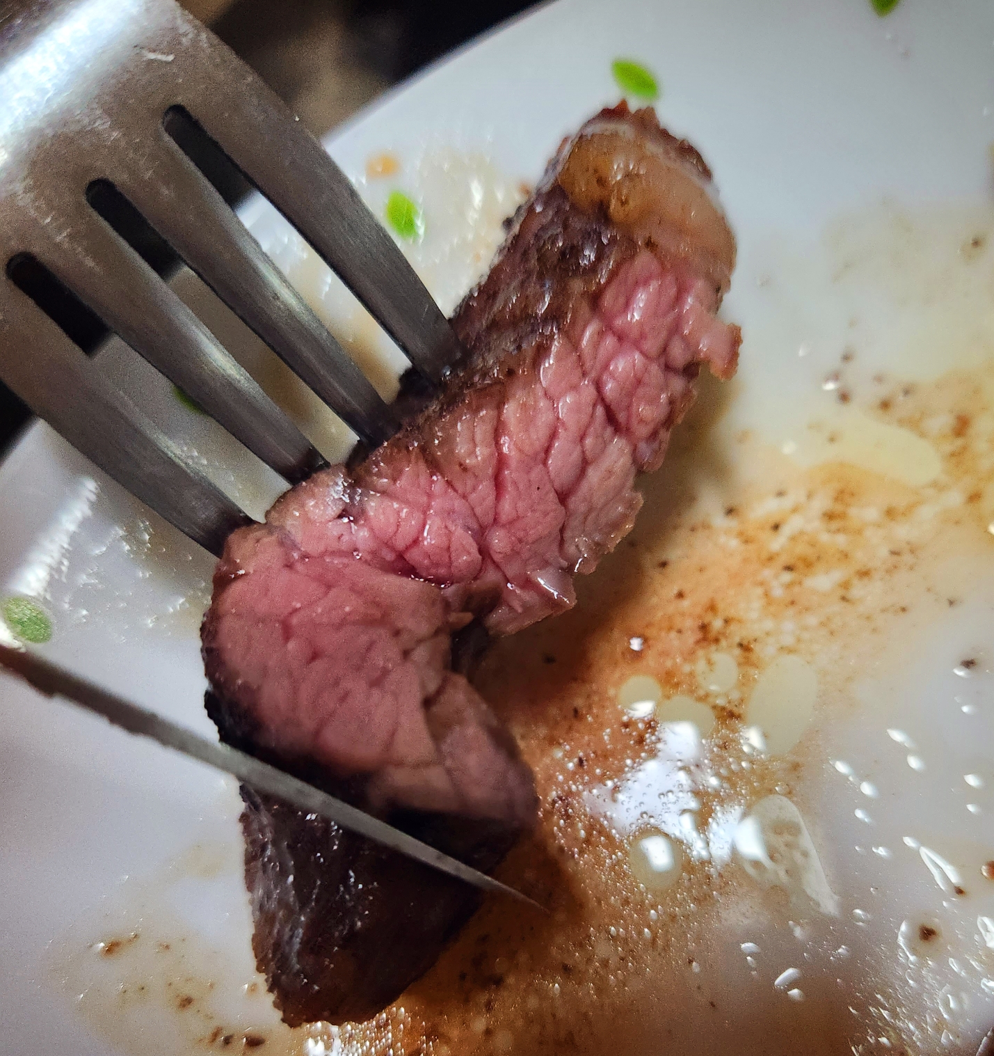 토마호크 한점을 잘라 살짝 눌러보니 바로 육즙이