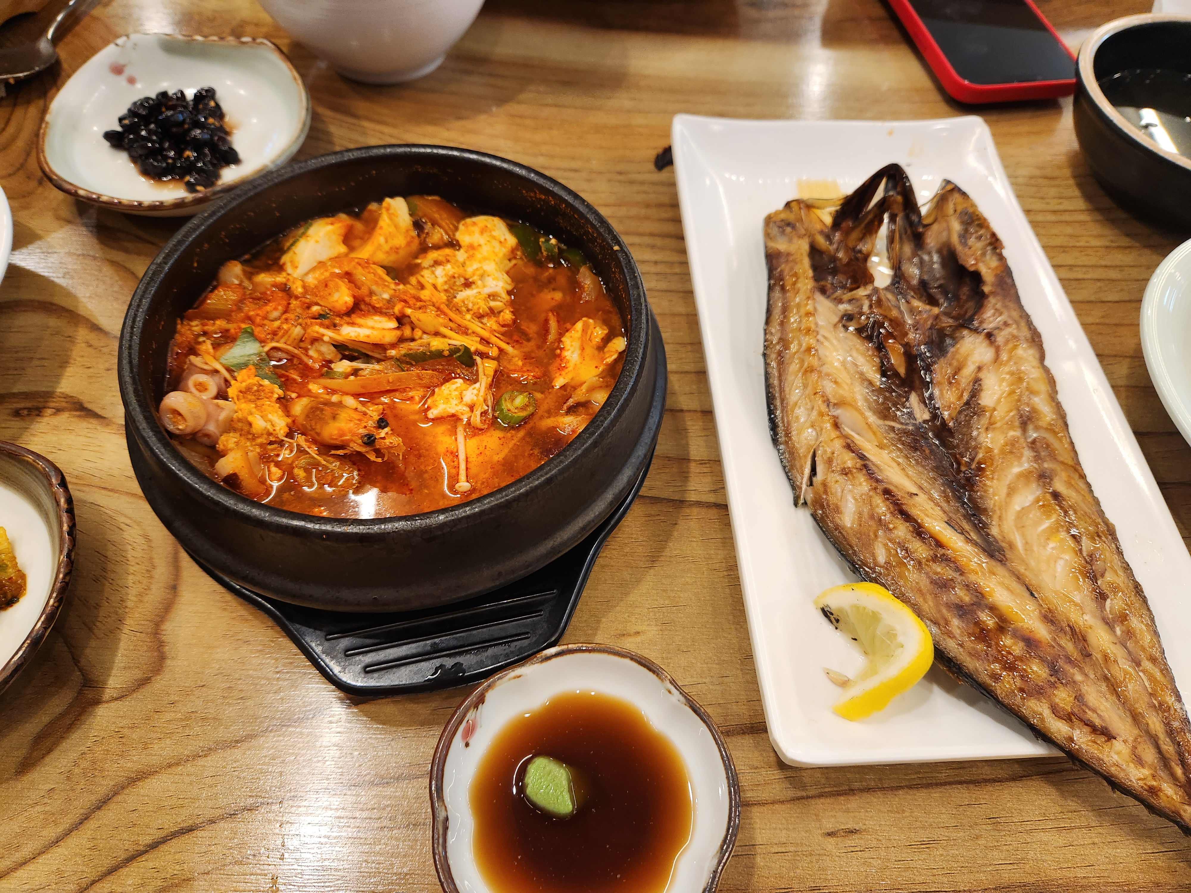 순두부찌개는 맵지 않았고, 칼칼한 맛도 없었으나