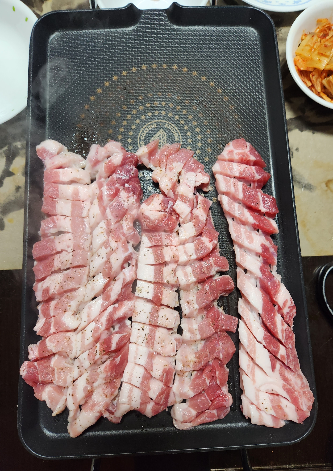 이제 삼겹살 굽기 시작